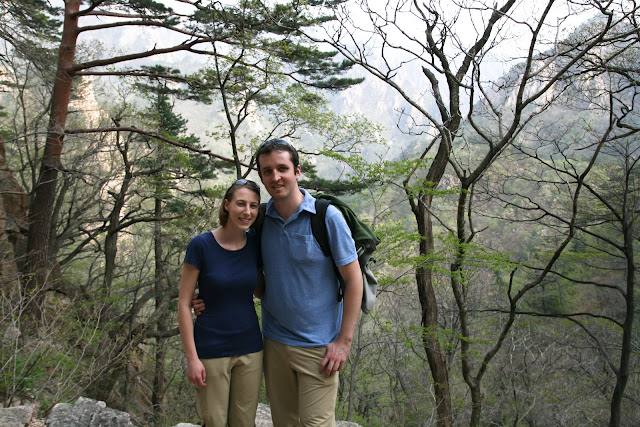 For our April-May term break Jonathan and I had already decided to head to the East Coast. My coworkers had mentioned that we should go there last term break, but we chose to wait until the area had some colour and would probably be even more beautiful. Were we ever glad we did! The scenery surrounding Sokcho, our base-city for this break, was breathtaking with unique mountains stretching along one side of the city and the East Sea (AKA what Japan is advocating to be called the Sea of Japan) shimmering on the other. Of the five provinces we've explored so far in South Korea, Gangwon-do shot straight up to the top of my list. (Although to be fair, I'm a sucker for mountains, large bodies of water, and colourful scenery, the last one having been absent in all our prior trips and cities-lived-in until near the end of April.) I was in scenic heaven for the four days we spent in the small coastal town of Sokcho.